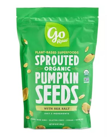Enjoy these Go Raw Organic Sprouted Pumpkin Seeds all on their own, as part of homemade trail mix, or sprinkled on top of a salad. Dusted with just a touch of Celtic sea salt, these sprouted seeds are brimming with flavor and also pair well in a number of recipes. Even better, they are certified organic, gluten-free, vegan, and Paleo-friendly. Made In USA Organic Raw Non-GMO Soy-Free Gluten-Free I...