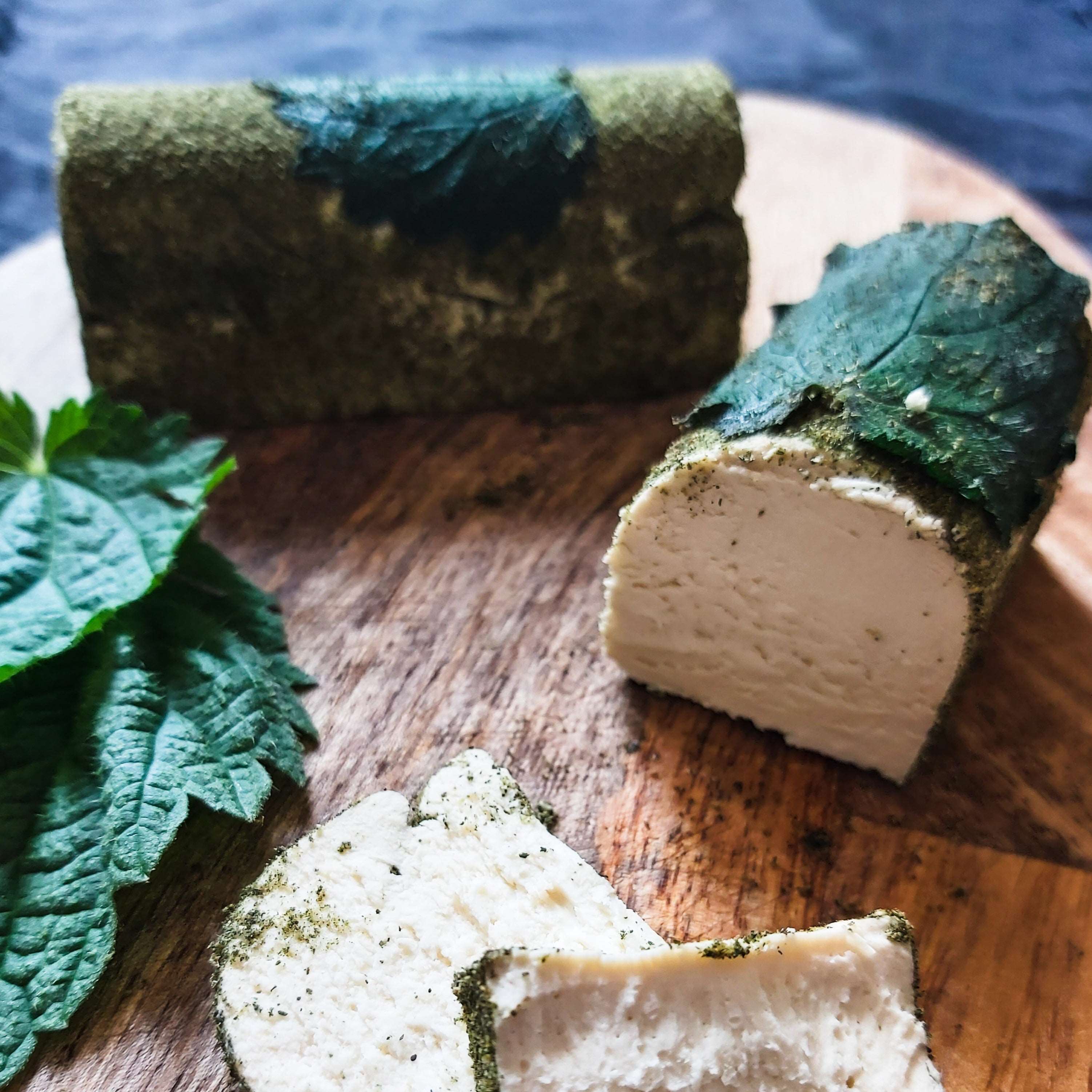 Goat-ee is a deliciously crumbly and creamy goat-style cheese. Double fermented and dusted with nettle powder, this cheese boasts a strong tanginess with verdant, grassy farmyard notes. Enjoy sliced on to a salad or in stuffed courgette tempura.