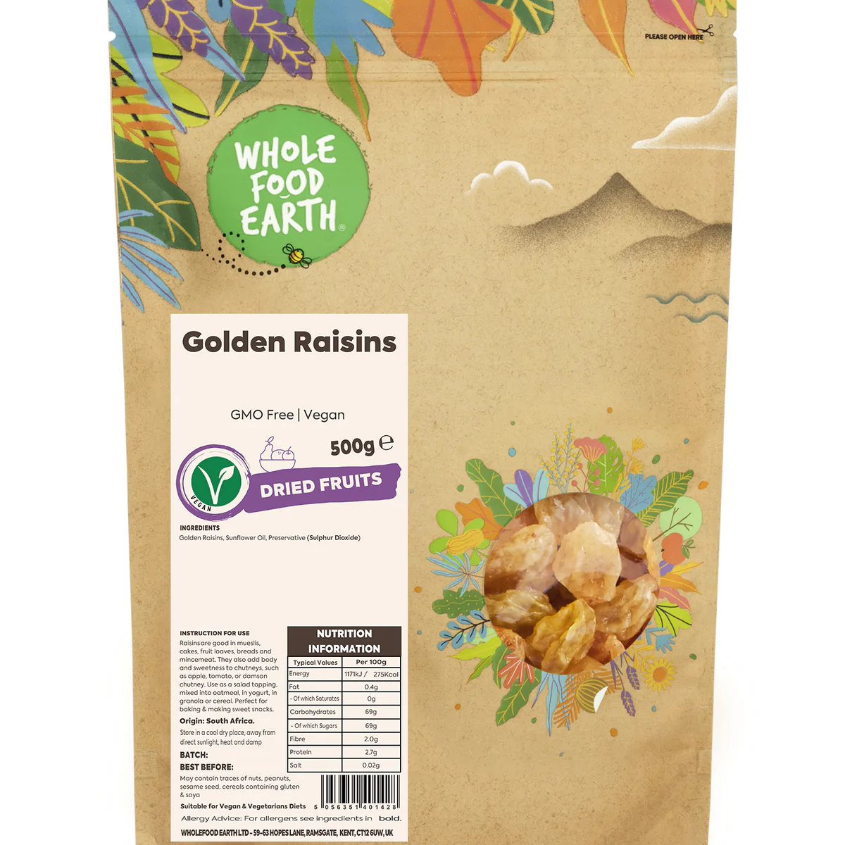 Our Golden Raisins are GMO - Free, Vegan, Dairy Free, No Added Sugar