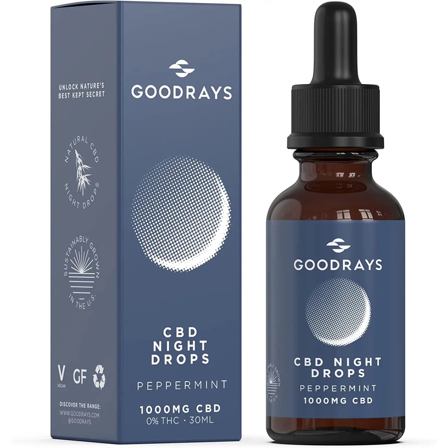Goodrays 30ml Mint CBD Sleep drops are designed to help you relax your body and unwind your mind in preparation for drifting into deep and uninterrupted sleep. Easy to dose and pleasant to taste, our 20% CBD oils are quickly absorbed by the body where our premium Colorado-grown cannabinoids can get to work - helping balance and calm the nervous system as part of your evening routine. Our CBD sleep drops won’t make you feel drowsy (so you don’t have to avoid operating heavy machinery) but maintain your natural balance and help relieve the stress that is the cause of the majority of sleep disorders. Our CBD is extracted from organically grown Colorado cannabis, is THC-free, third party lab tested, vegan and gluten free. Discover the art of relaxation