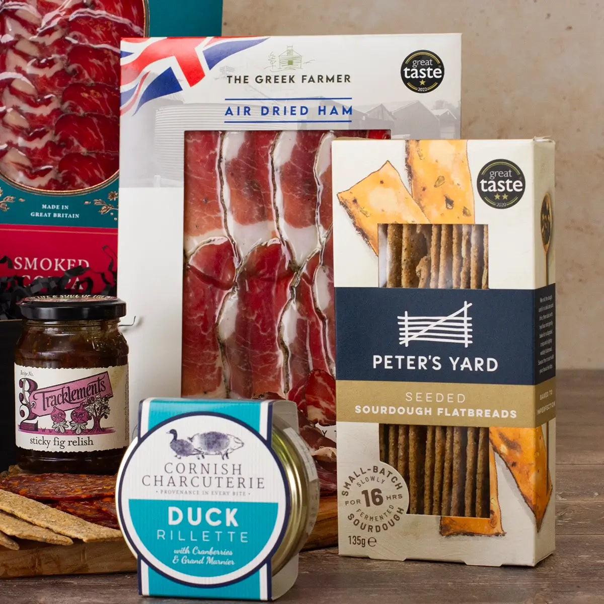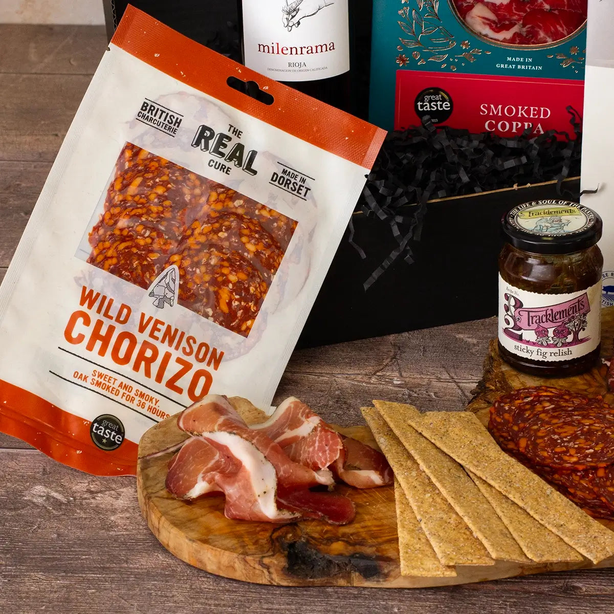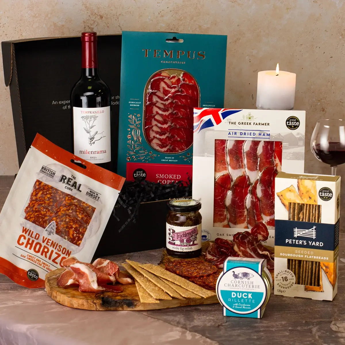 Indulge in the epitome of gourmet gifting with our Luxury Wine & Charcuterie Gift Box, thoughtfully curated to delight any food and drink enthusiast. This exquisite hamper combines a selection of premium red wines with an assortment of artisanal charcuterie, creating a harmonious blend of flavours and textures perfect for any special occasion or elegant entertaining.