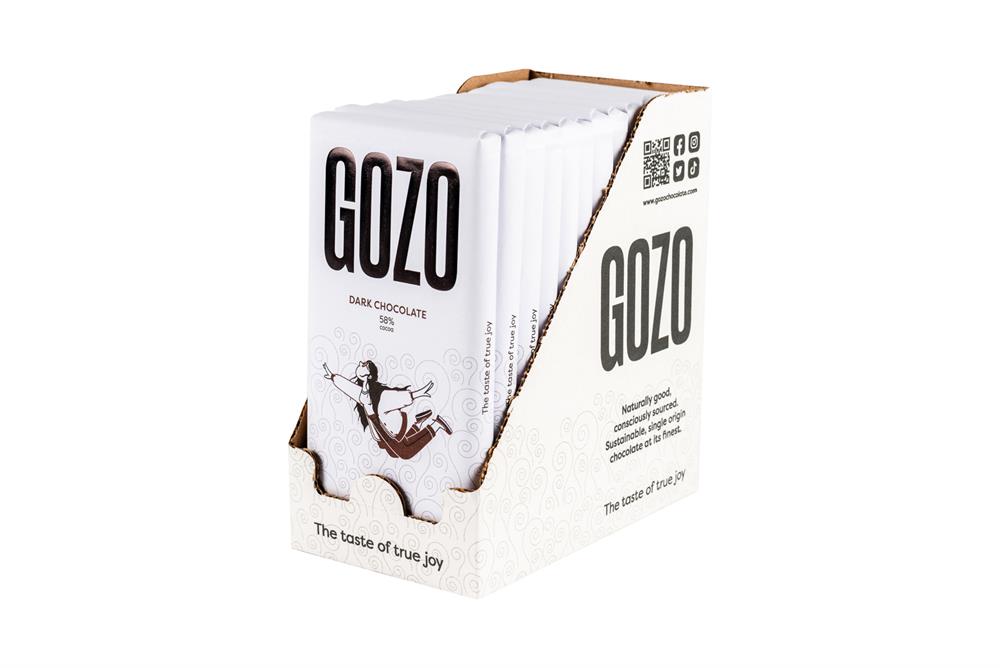 GOZO's rich, aromatic dark chocolate will sweep you off your feet. With exquisite flowery, fruity, and nutty tasting notes of our Colombian Cacao Fino de Aroma chocolate, with all its natural cocoa butter preserved. This delicious, chunky chocolate bar uses only the finest cocoa from our certified B-Corp supplier in Columbia. So we can assert: No child labour Gender equality No slavery Enhanced fa...