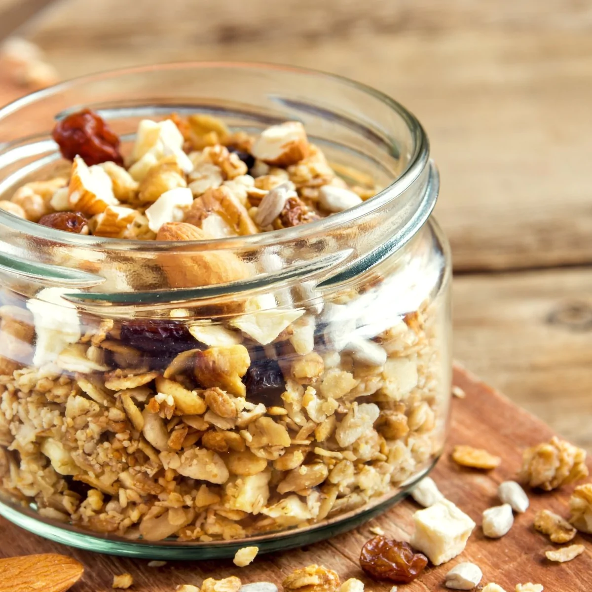 Granola is rich in fibre and protein. It can be used as a topping in ice creams and puddings to give it a crunchy taste. You can also have a granola with fresh fruits for breakfast. Or just as a snack!
