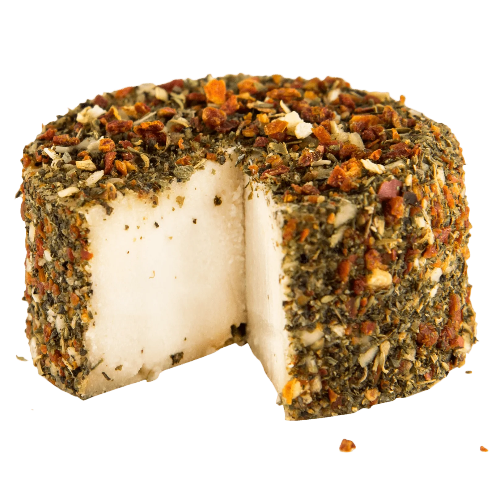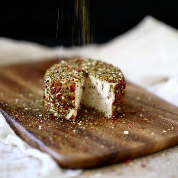 Plant-based alternative to fresh cheese coated in mediterranean herbs and spices. Made in Switzerland from organic cashew nuts. Fermented following traditional Swiss cheese-making methods.