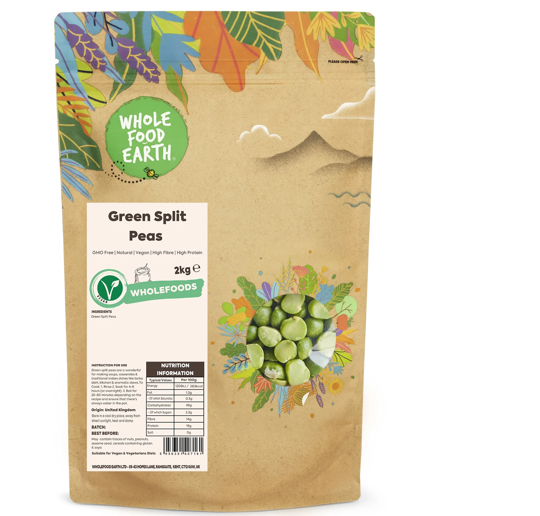 Green Split Peas have a natural mild sweetness and a nutty, earthy milder taste. They provide a good source of fibre and vitamins including B1, B2, B3, K & Folate and minerals including iron, potassium, copper, manganese & zinc.