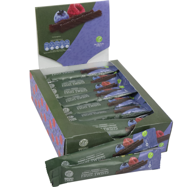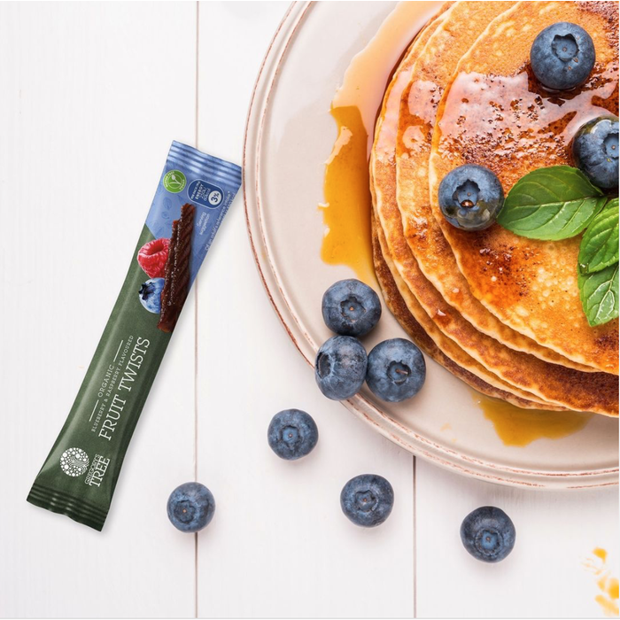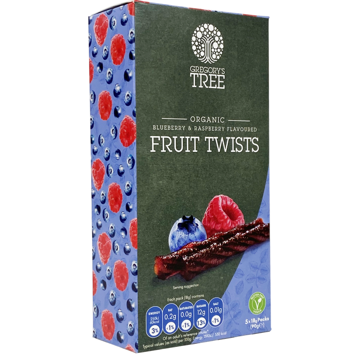 Gregory's Tree Blueberry & Raspberry Double Fruit Twist bar bursts with fruit flavour because it is made from pure organic fruit, which is gently heated, pulped and twisted. There is no added sugar in our fruit bars, they just taste naturally great!