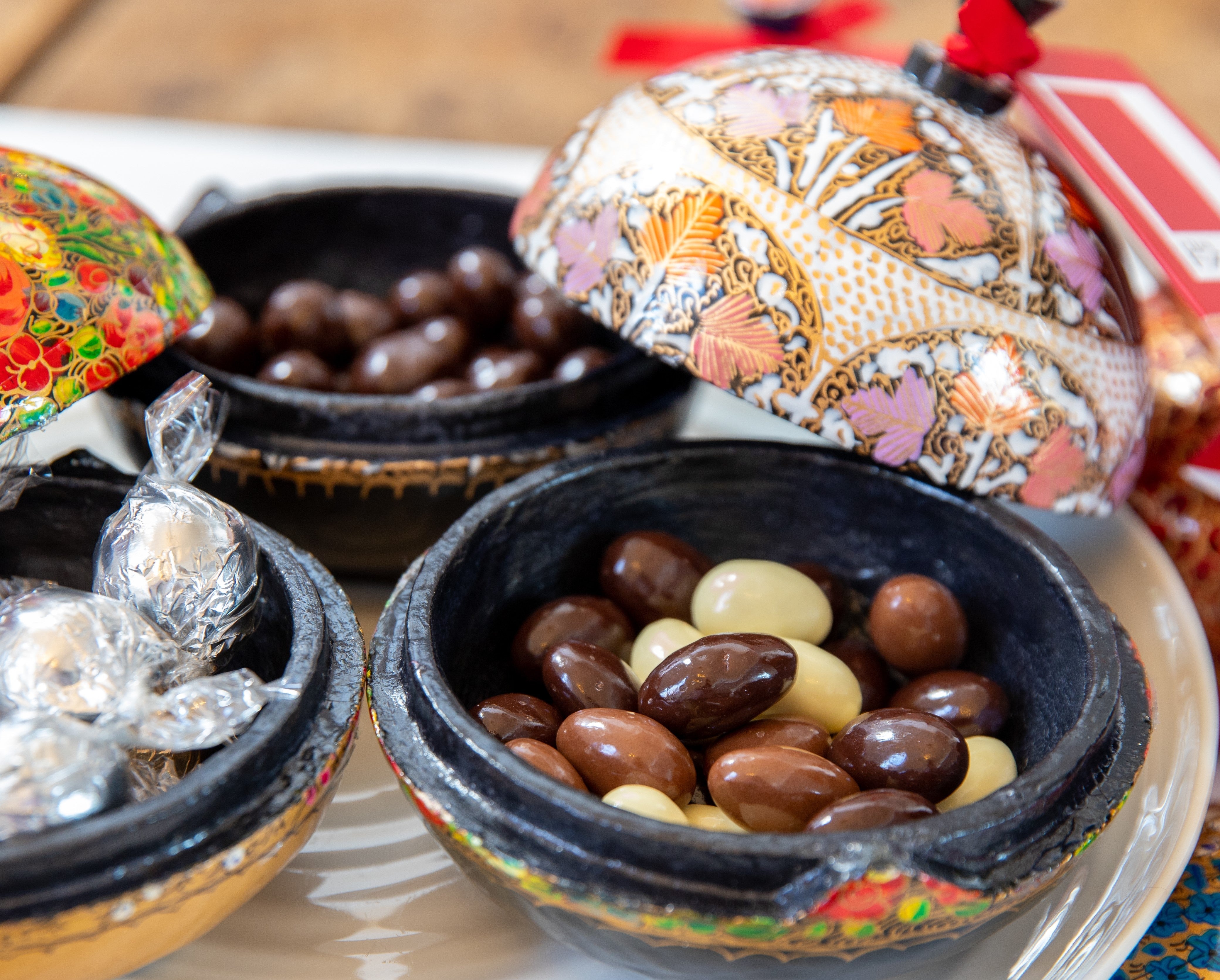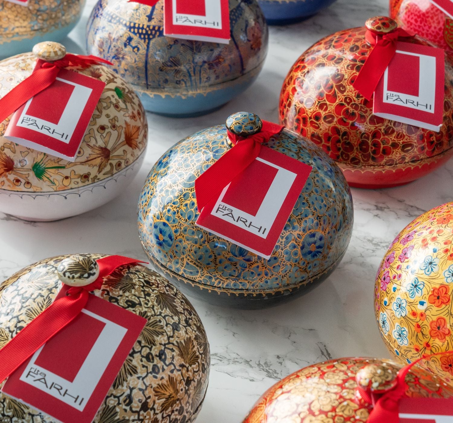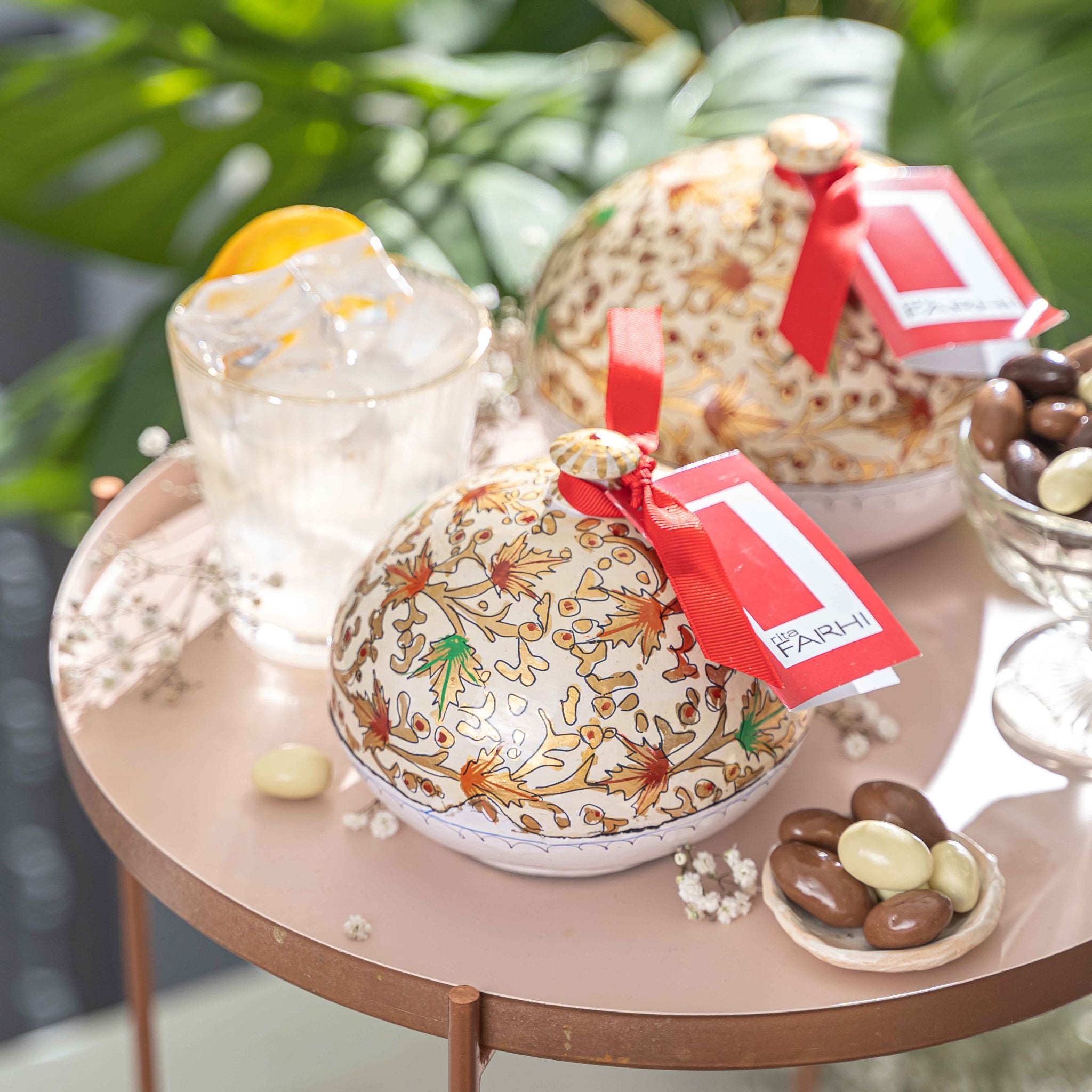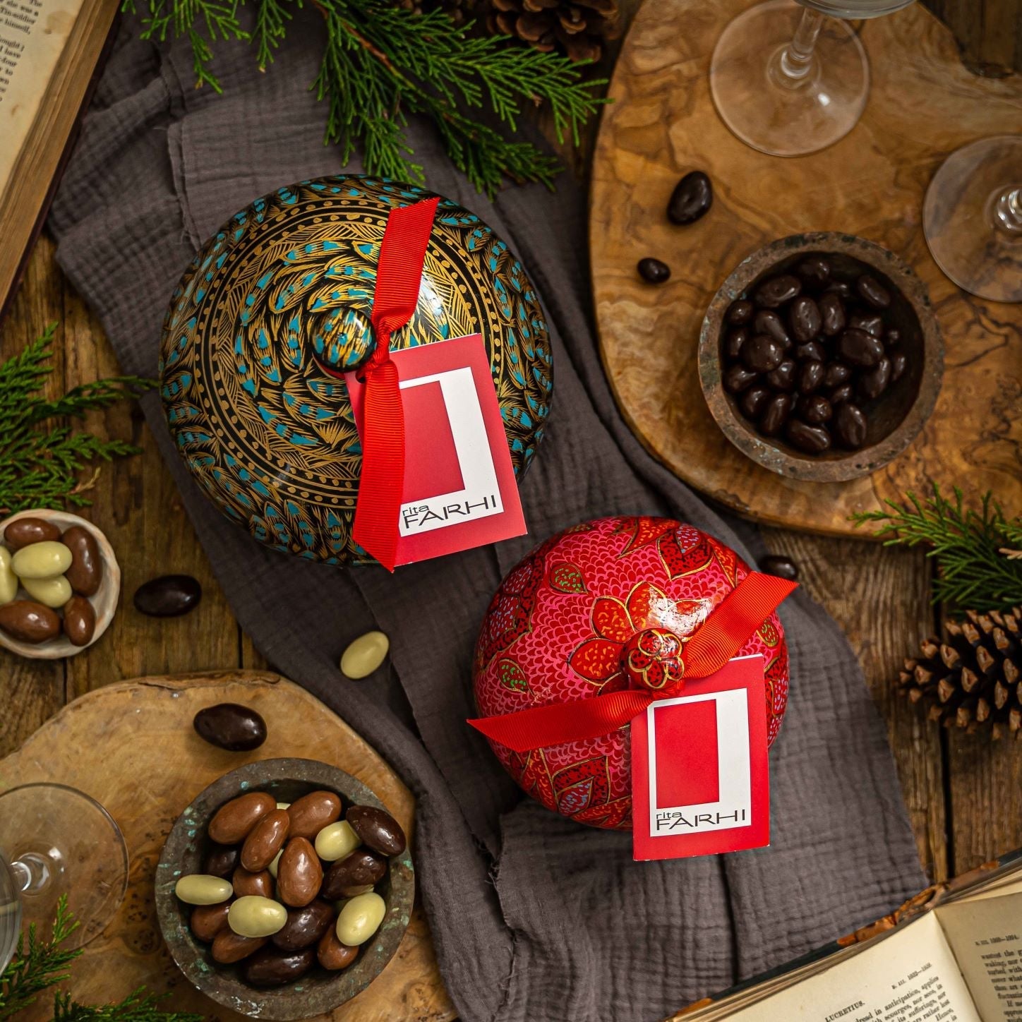Our bonbonnières were inspired by a European tradition from centuries ago, where the host of a celebration offered their guests a little box (or a bonbonnière) made from porcelain, crystal or silver, containing delicacies made from sugar. Given out at special events such as weddings, christenings and birthdays, they were designed to bestow good luck on the guests. Rita Farhi Bonbonnières are made from papier mâché and hand painted creating a beautiful and truly unique gift. Filled with aromatic Brazilian coffee beans wrapped in sumptuous dark chocolate these stunning boxes make for a stand-out celebratory gift. In a range of elegant designs these beautiful, luxurious keepsake gift bonbonnières will be treasured long after the delicious chocolate is gone.