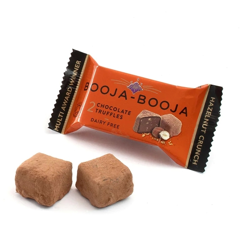 A delicious twosome of vegan and organic chocolate truffles for a perfect little Booja-Booja moment when the mood takes you. Melt in your mouth chocolate truffles with sweet, roasted hazelnuts from Italy.