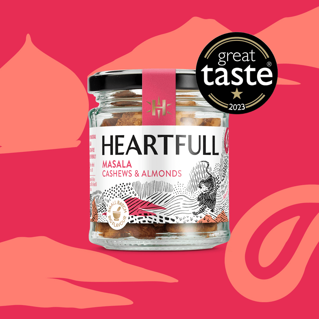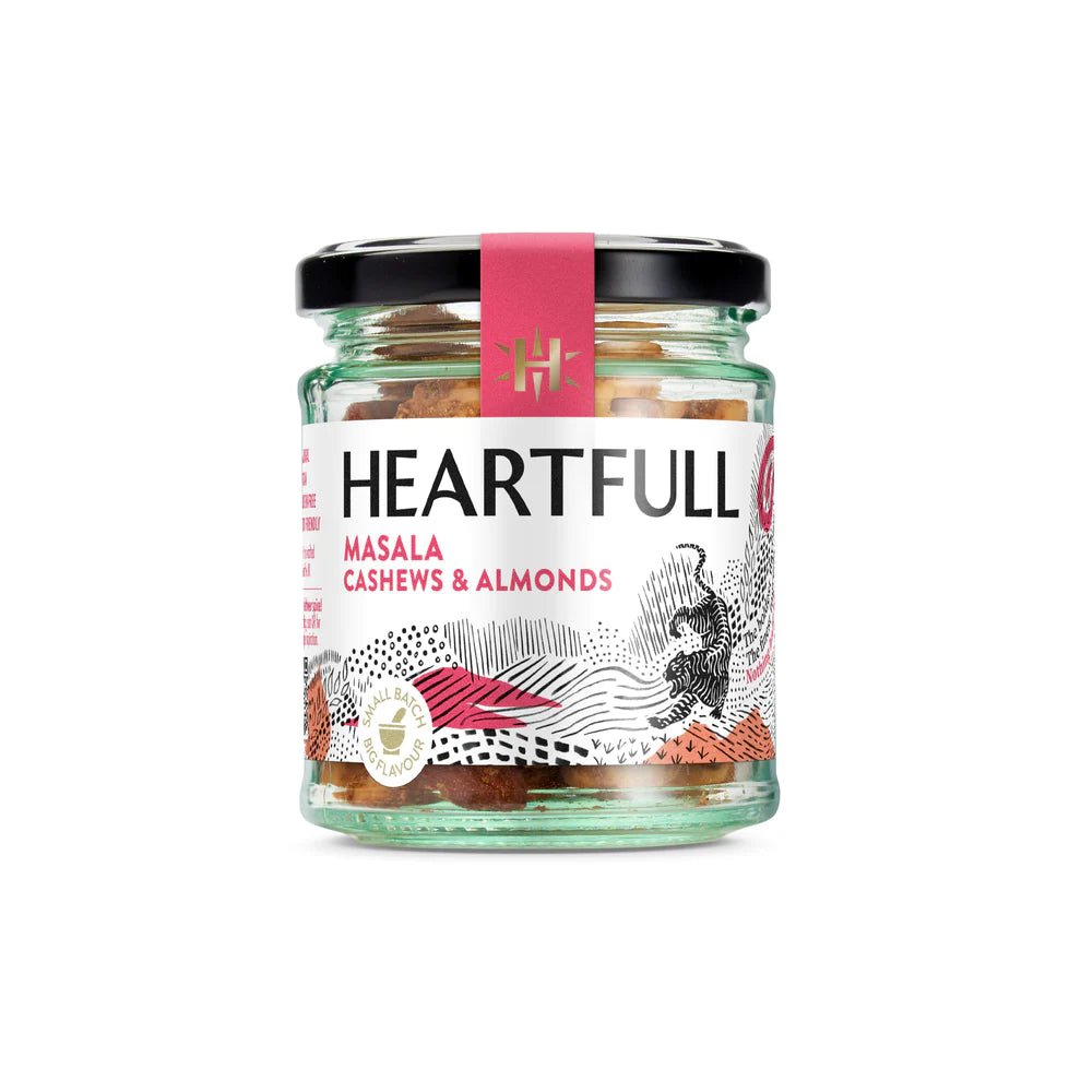 Slow-roasted cashews and almonds in an opulent fusion of Indian spices. They evoke the scents and soul of Punjab by featuring the founder’s family Garam Masala blend, perfected and cherished for over half a century in their curries, and now enriching the flavour of Nalo's nuts. With the intensity of its gaze, striking pattern, colours and ferocious presence, the allure of the tiger embodies fierce, fiery and vibrant masala nuts.