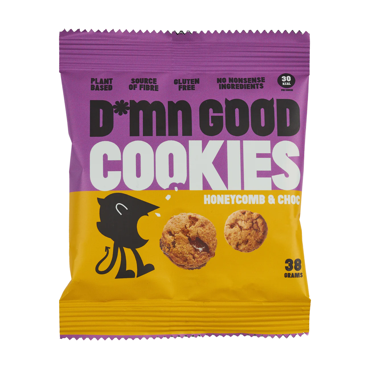 Ingredients: Gluten Free Oat Flour, Coconut Sugar, Coconut Oil, Dark Chocolate (15%) [Cocoa Mass, Sugar, Emulsifier: Soya Lecithin, Natural Vanilla Flavouring], Water, Cornflour, Baking Powder (Mono Calcium Phosphate, Corn Starch, Sodium Bicarbonate), Sea Salt, Natural Honeycomb Flavouring