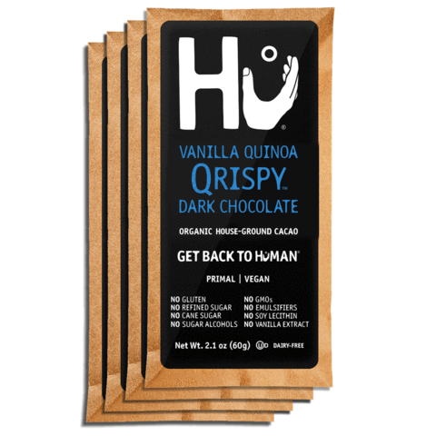 Hu's Vanilla Quinoa Qripsy is a new twist on classic crunchy chocolate bars Hu's smooth dark chocolate mixed with the subtle sweetness of real vanilla bean powder (no extracts or artificial flavors here). Layered puffed quinoa provides a satisfying crispy texture 70% dark chocolate 2.1 oz. chocolate bar Paleo, Vegan, & Dairy-Free Ingredients: Organic cacao, unrefined organic coconut sugar, organic...