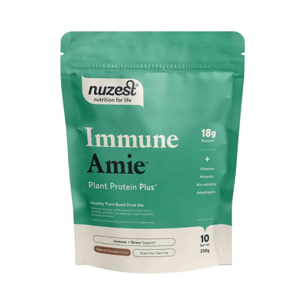 Fortify your daily nutrition with Immune Amie Chocolate Protein Powder from Nuzest. This specialised formula combines premium plant-based protein with immune-supporting ingredients designed to strengthen your body's natural defences. The rich chocolate flavour makes it an enjoyable addition to smoothies, baking, or simply mixed with water or milk. Each serving delivers comprehensive nutritional support, making it an ideal choice for those seeking to enhance both protein intake and immune resilience. Perfect for active individuals prioritising wellness alongside fitness goals.