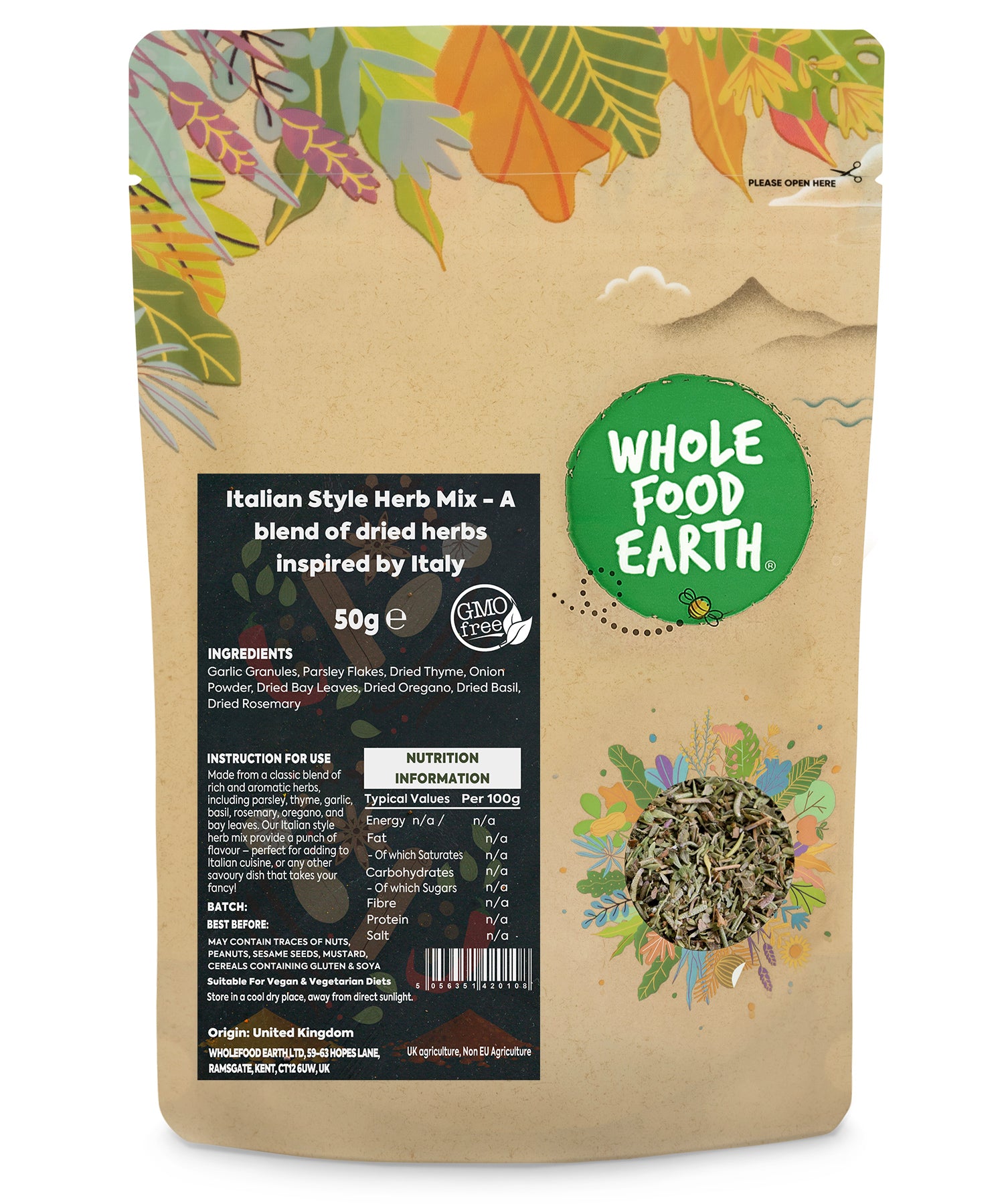 Made from a classic blend of rich and aromatic herbs and spices, including parsley, thyme, garlic, basil, rosemary, oregano, and bay leaves. Our Italian herb mix provide a punch of flavour – perfect for adding to Italian cuisine, or any other savoury dish that takes your fancy!