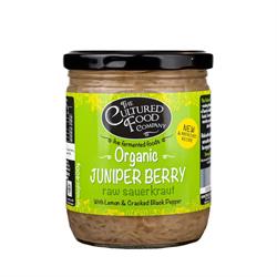 Juniper Berry With Lemon and Cracked Black Pepper One of our simplest yet most delicious sauerkraut's. Zesty, fruity, fresh and flavourful, the juniper berries are fermented with cabbage infusing their flavour into the sauerkraut making this an incredibly versatile and tasty condiment. Barrel aged for several months and traditionally fermented this sauerkraut is unpasteurised and naturally rich i...