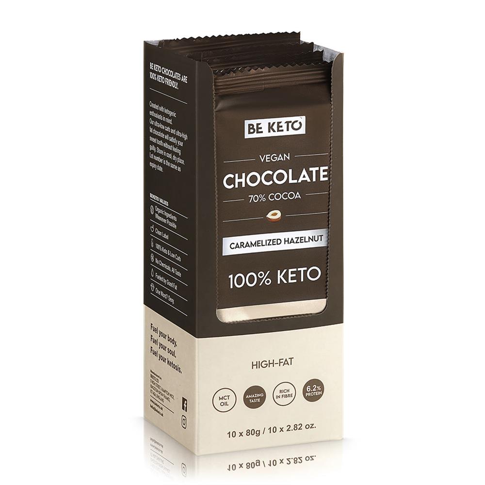 Vegan Keto Chocolate with MCT Oil and Caramelised Hazelnuts combines rich flavour and health benefits. It is an amazing combination of deep cocoa with a hint of caramelised hazelnut, so that even those on a ketogenic or low-carbohydrate diet can enjoy a unique feast for the palate. MCT oil, a valuable metabolism-supporting ingredient, adds functionality to our chocolate, helping with the ketosis p...