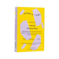 Rumble Tums Kids Meals Yummy Diced Honey Chicken Rice 141g. Free-range chicken thigh with baby corn and carrots in a sesame oil, honey and soy marinade, tossed with with brown rice. Absolutely no nasties. Rumble Tums was created by nutritionist and trusted health expert Madeleine Shaw, perfect for busy parents who want to feed their children balanced and delicious meals. With lots of hidden vegg...