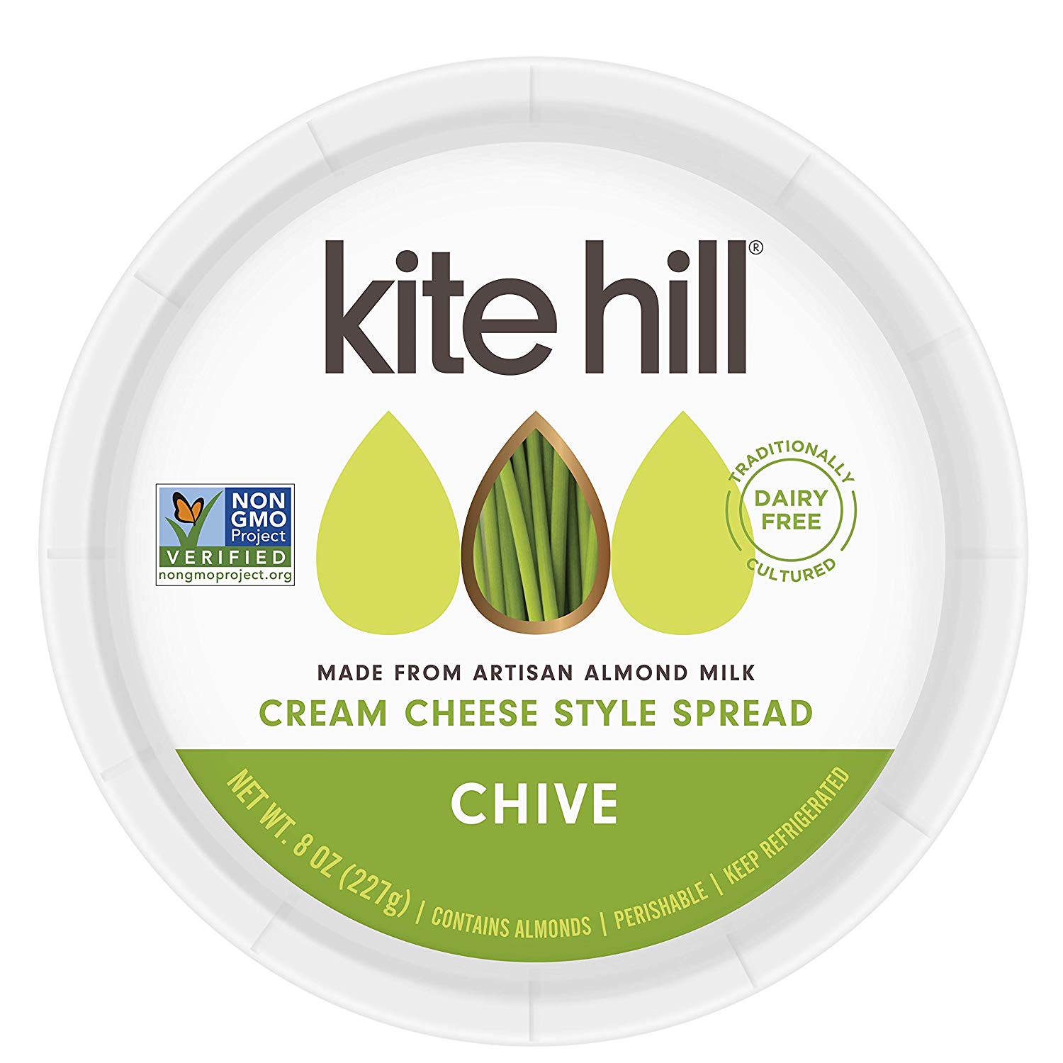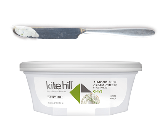 The savory flavor of chives and white pepper accents our smooth non-dairy cream cheese-style spread. INGREDIENTS Almond Milk (Water, Almonds), Salt, Chives, Enzyme, Xanthan Gum, Guar Gum, White Pepper, Lactic Acid, Cultures.