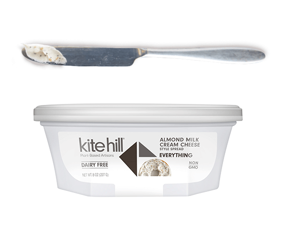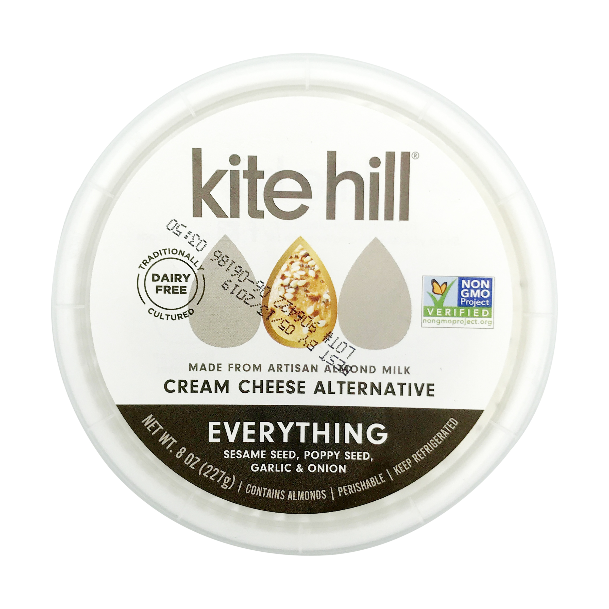 Schmear on the full flavor of delicious herbs and seeds with this non-dairy cream cheese spread. INGREDIENTS Almond Milk (Water, Almonds), Salt, Dehydrated Onion, Poppy Seed, Dehydrated Garlic, Sesame Seeds, Roasted Sesame Seeds, Enzyme, Xanthan Gum, Guar Gum, Lactic Acid, Cultures.