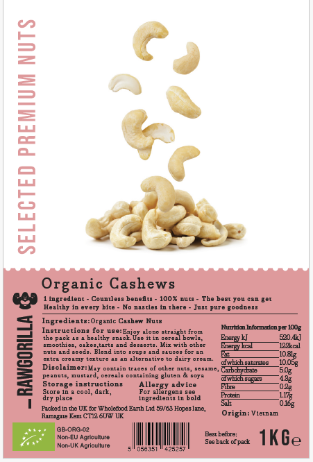 Label - Organic Cashew Nuts - RAWGORILLA