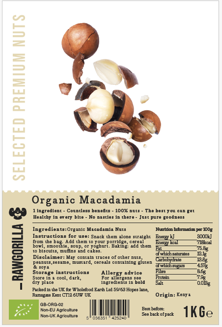 Label - Organic Macadamia Nuts - RAWGORILLA