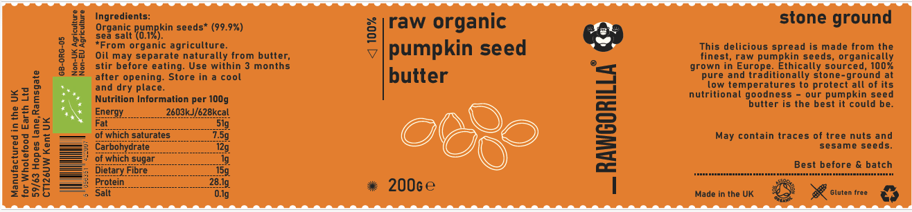 Label - raw organic pumpkin seed butter - RAWGORILLA