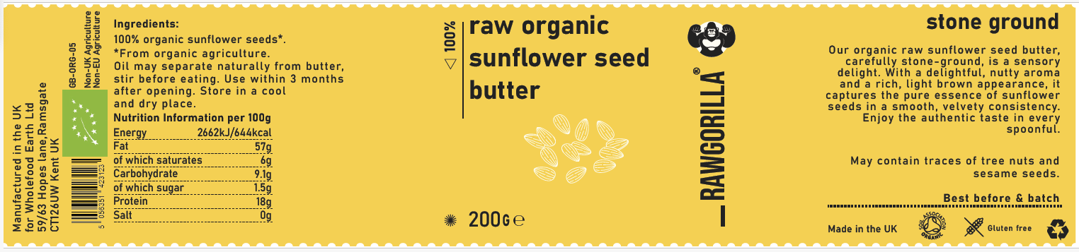 Label - Raw Organic Sunflower Seed Butter - RAWGORILLA