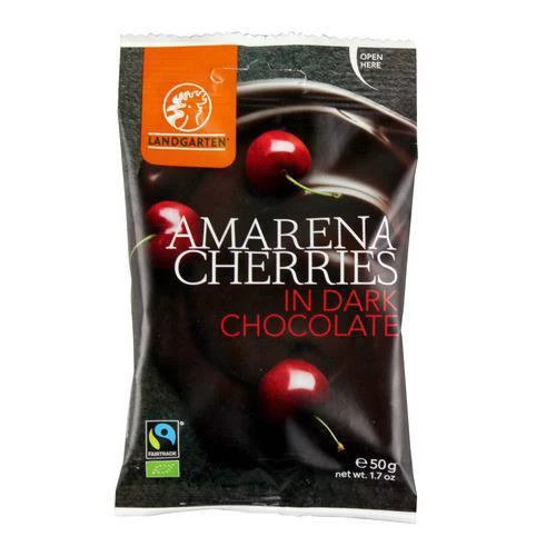 Romantically red and indulgently intense, Landgarten's Amarena cherries in Dark Chocolate is a gift of adoration for health conscious snackers around the globe. Specially chosen Italian sour cherries work in harmony with your favourite fair trade dark chocolate, teasing the palette and creating a healthy snack like no other. Free yourself from tasteless treats, say goodbye to dry delicacies and ex...