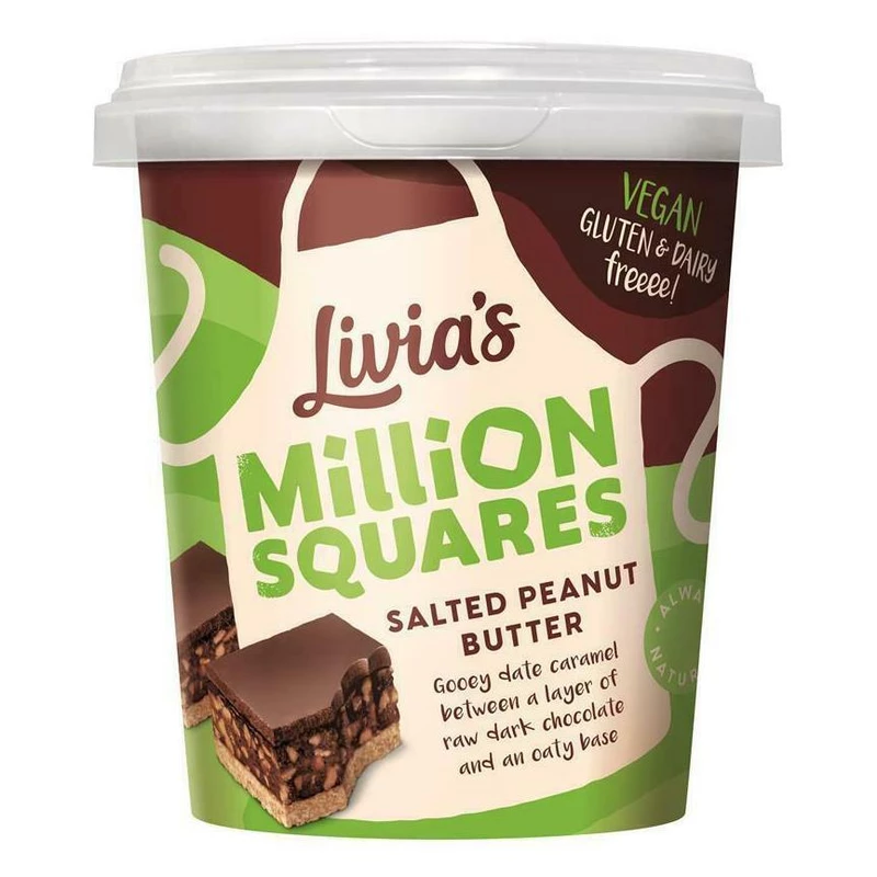 Gooey date caramel between a layer of raw dark chocolate and an oaty base. At Livia’s, we say BETTER TREAT YOURSELF! Try these unbelievably tasty, gooey, all-natural Salted Peanut Butter Million Squares. All our products are vegan, gluten and dairy freeee!