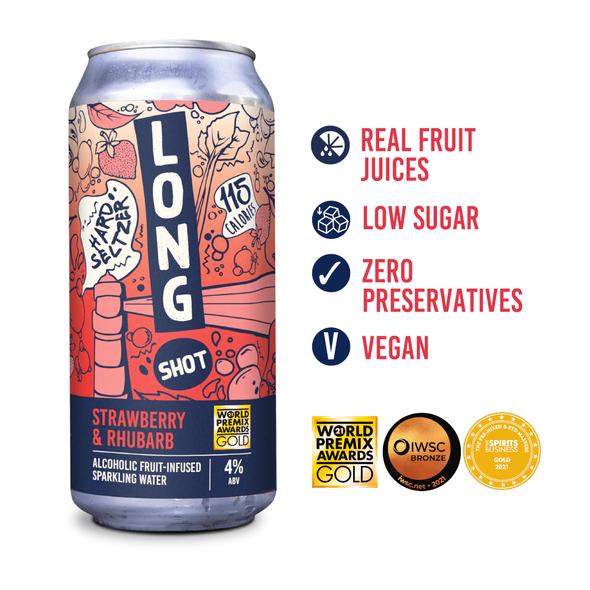 A clean, fruity-fresh blend of sweet British strawberries and tart rhubarb juice mix perfectly with sparkling mineral water and a splash of alcohol.