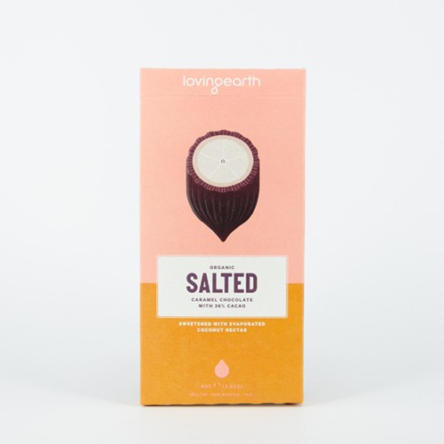 Our Salted Caramel Chocolate is made by blending Certified Organic Virgin Cacao Butter from Peru with Cashews, Organic Evaporated Coconut Nectar and a pinch of Pink Lake salt, sourced locally from Western Victoria.