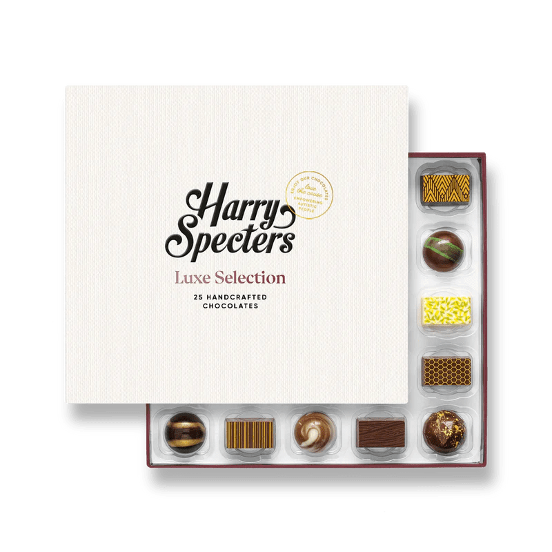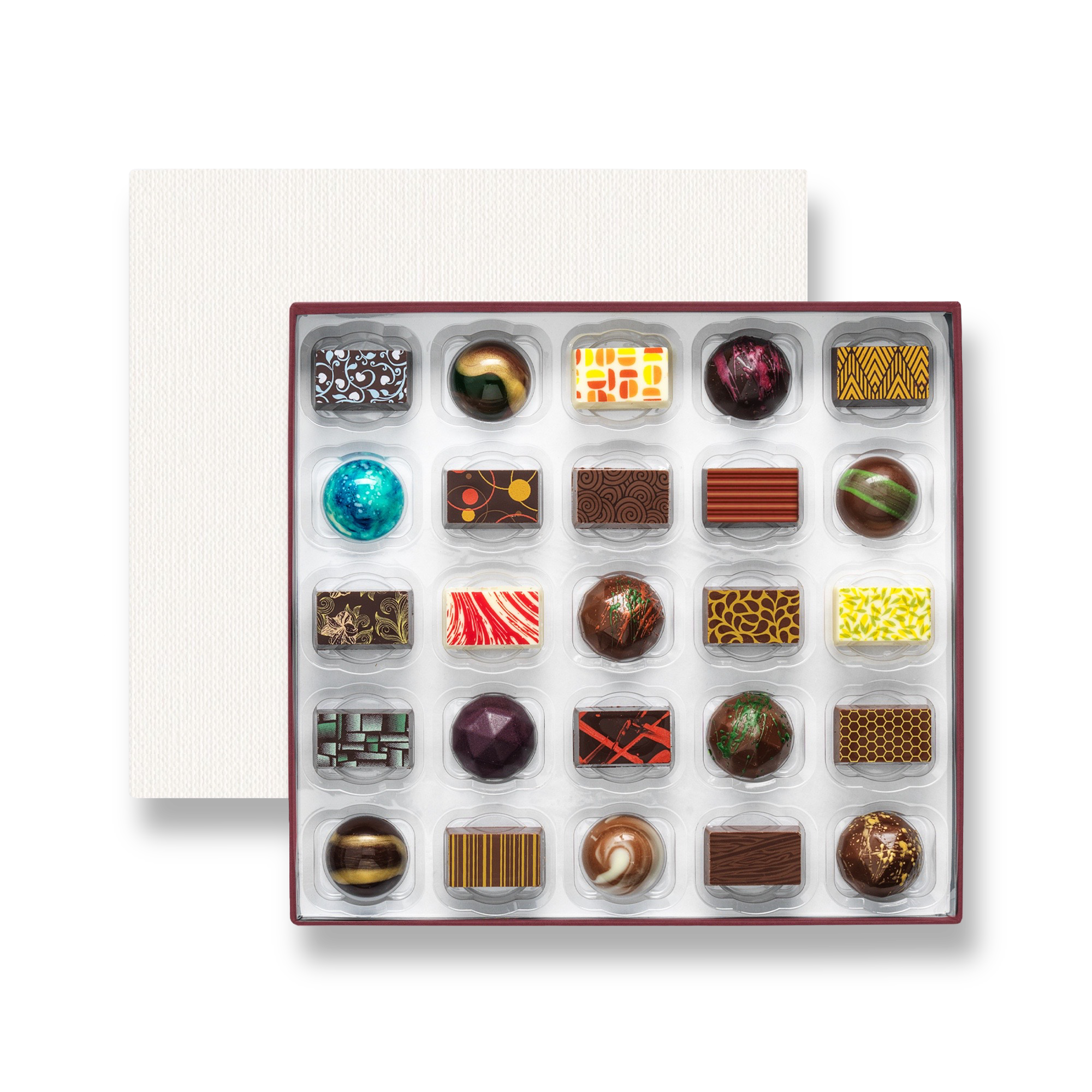 • 25 hand-crafted chocolates, including an assortment of truffles, caramels, and pralines