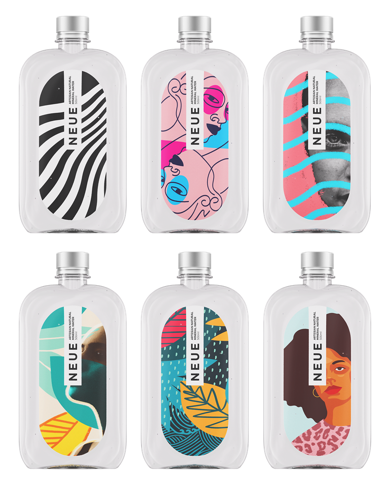 NEUE Water is a luxury bottled water brand that's different. Consciously created to fit jean pockets, the seatback storage of a train or plane, and for the first time, the small handbag of every woman on the planet. Every bottle is also made with 100% recycled plastic, filled with artesian mineral water from Denmark, and feature artist-designed labels, created on 100% recyclable material.