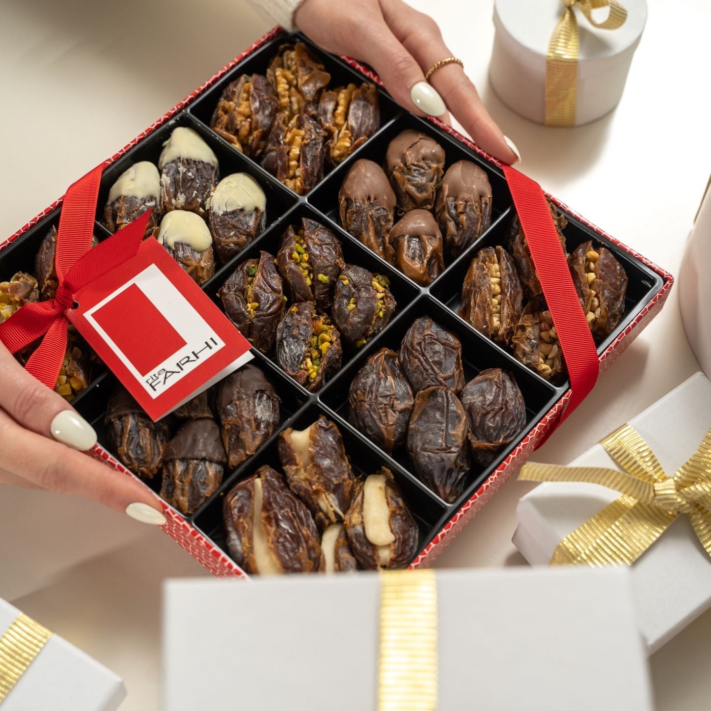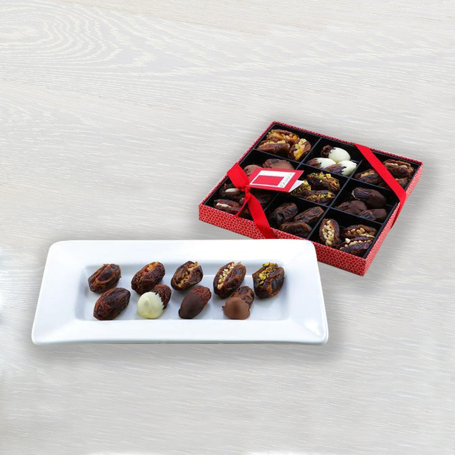 Experience the ultimate indulgence with our Luxury Chocolate Dipped Medjool Dates. Hand-picked for their exceptional quality, our Medjool dates are generously stuffed with exclusive, sumptuous fillings like zesty orange peel and creamy marzipan. Each date is enveloped in your choice of premium milk, dark, or white chocolate, creating a harmonious blend of rich flavours that delight the senses. Presented in our signature selection gift box, this exquisite gift set is perfect for birthdays, anniversaries, or any special occasion, ensuring you leave a lasting impression.