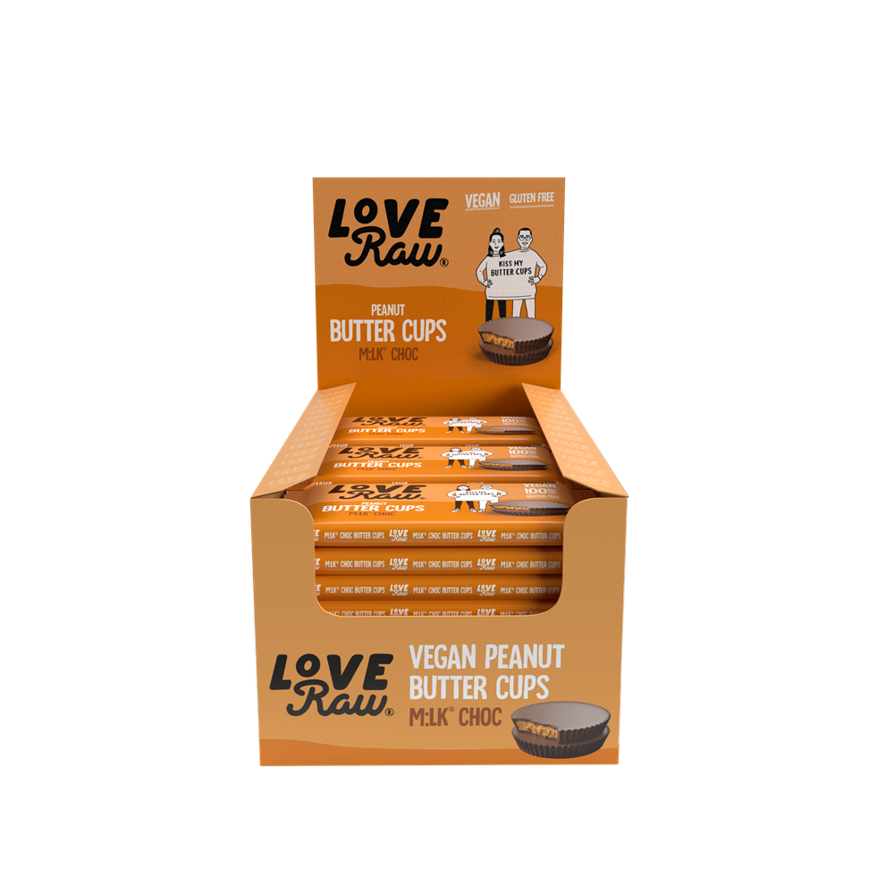 2 x melt in your mouth vegan m:lk choc cups filled with a gooey peanut butter ce...