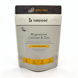 Magnesium, Calcium & Zinc 60 Veggie Caps in our 100% recyclable paper refill pouch. Magnesium, Calcium & Zinc contribute to the normal maintenance of bones and teeth. Vegan and free from excipients, soy, GMO, gluten, lactose and sugar. For nutritional information and ingredients, click Further Information.