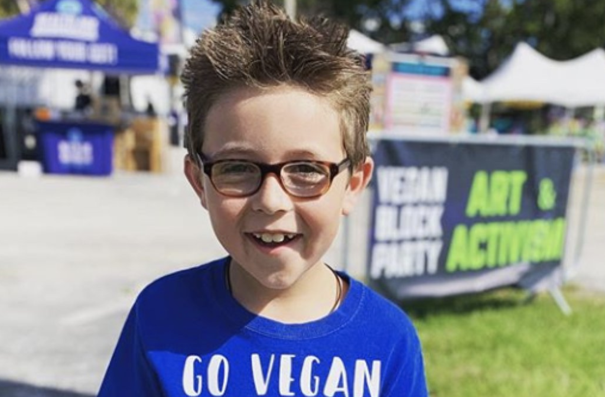Evan is a 9-year-old boy from Melbourne, Florida. He is passionate about animal rights and eats only vegan food himself. He has been vegan since the age of 5 and loves everything about it. “I like that you can eat a meal and animals don’t have to be hurt and the planet doesn’t have to be hurt,” he said.