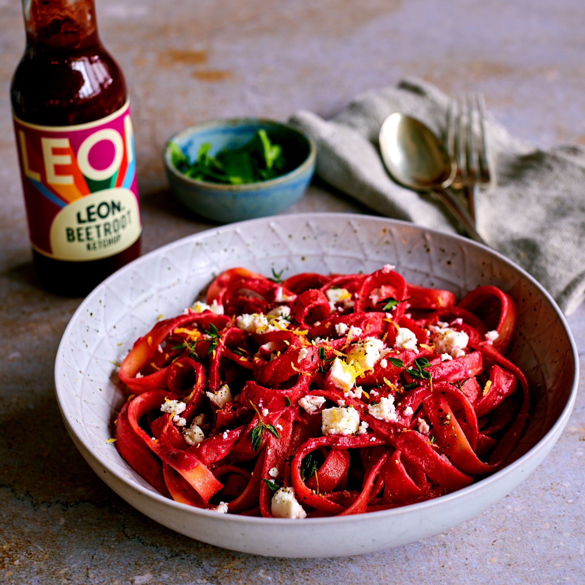 Beetroot lovers gather around because I have the perfect recipe for you! By using LEON’s Beetroot Ketchup and a few other bits and bobs, you can create this mega vibrant bowl of goodness. Remember to treat yourself to extra vegan feta on top! Recipe here.