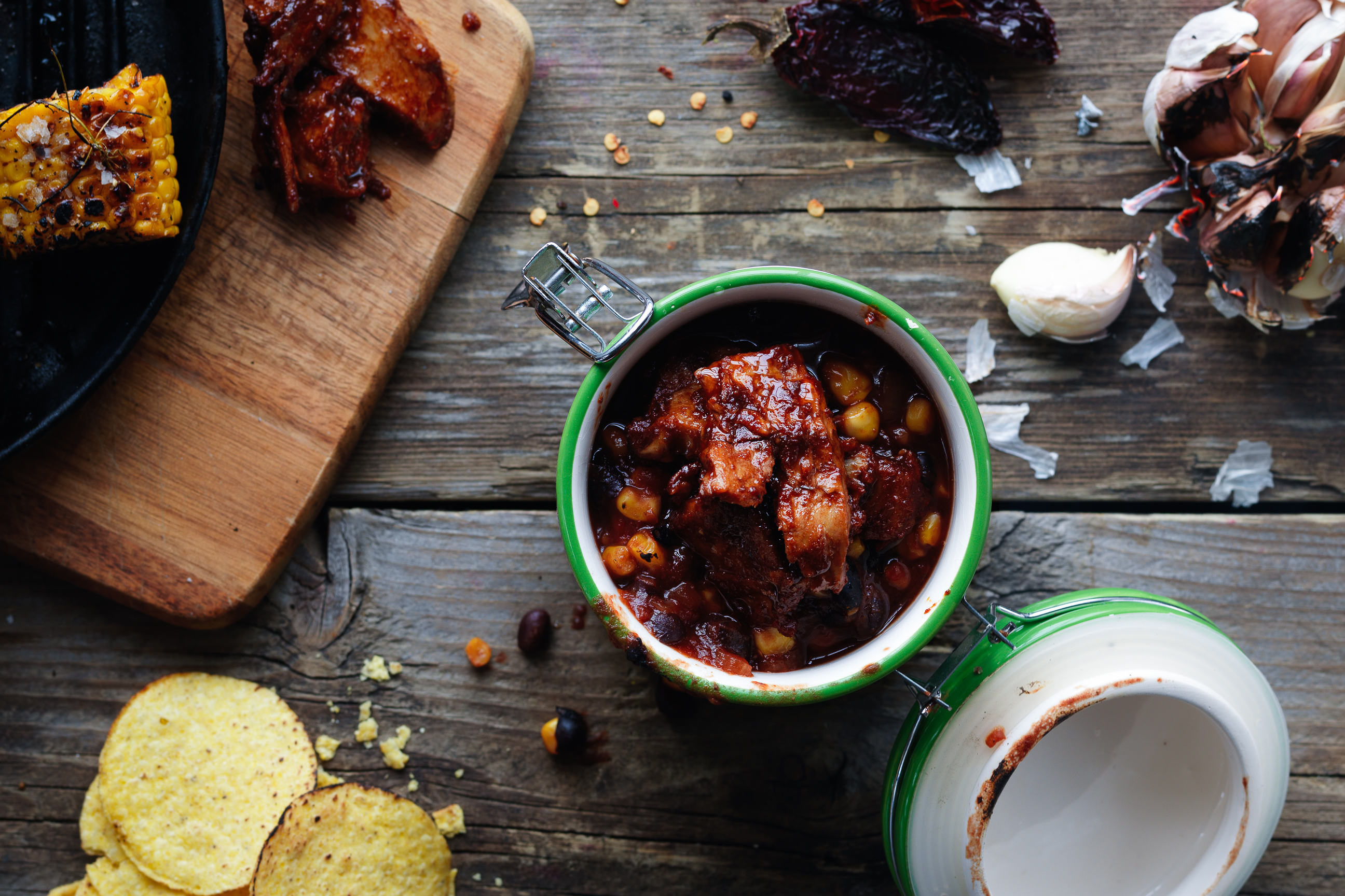 Chilli sin Carne with Oumph! plant-based meat! This spicy vegan stew contains red pepper, sweet corn, vegan meat cuts, and tomatoes. Perfect for serving with rice or nachos for a tasty vegan dinner.