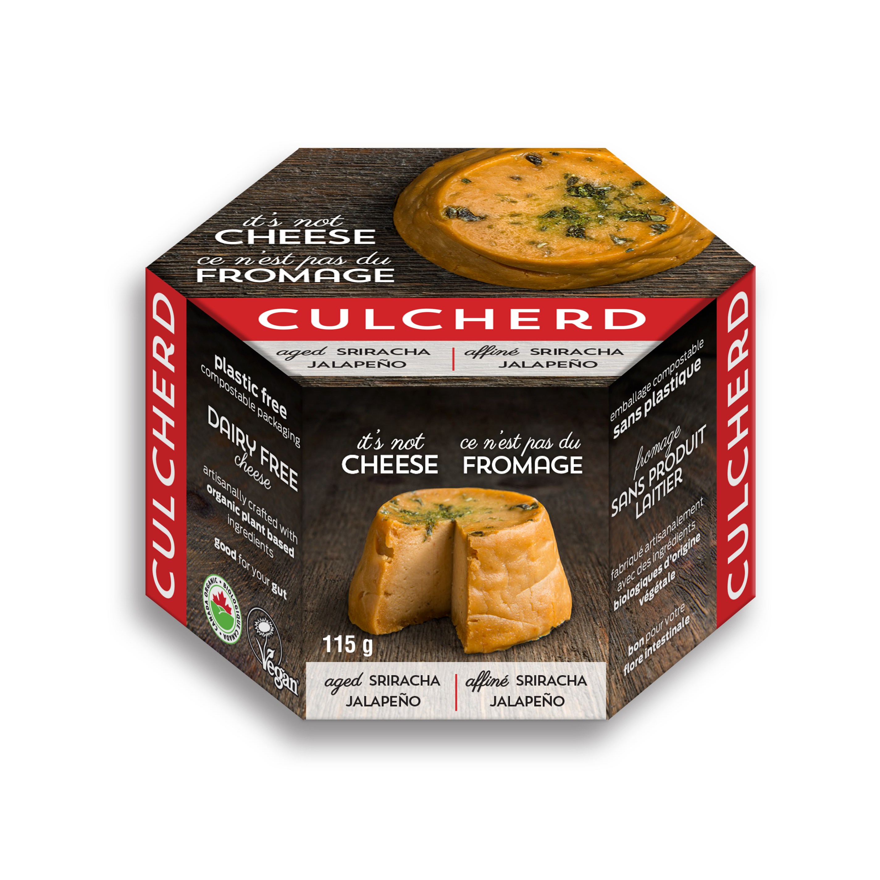 With over 1 billion probiotics in each serving, the “It’s Not Cheese” product line supports a healthy immune and digestive system by helping to maintain a balanced gut microbiome. All of Culcherd’s artisanal cheeses are “aged” and have a natural rind, which sets them apart in the market. The 6 cheese flavour offerings include Original, Herb & Garlic, Sharp & Smoky, Sriracha Jalapeno, Sundried Tomato & Olive, and their newest cheese, Everything Bagel.