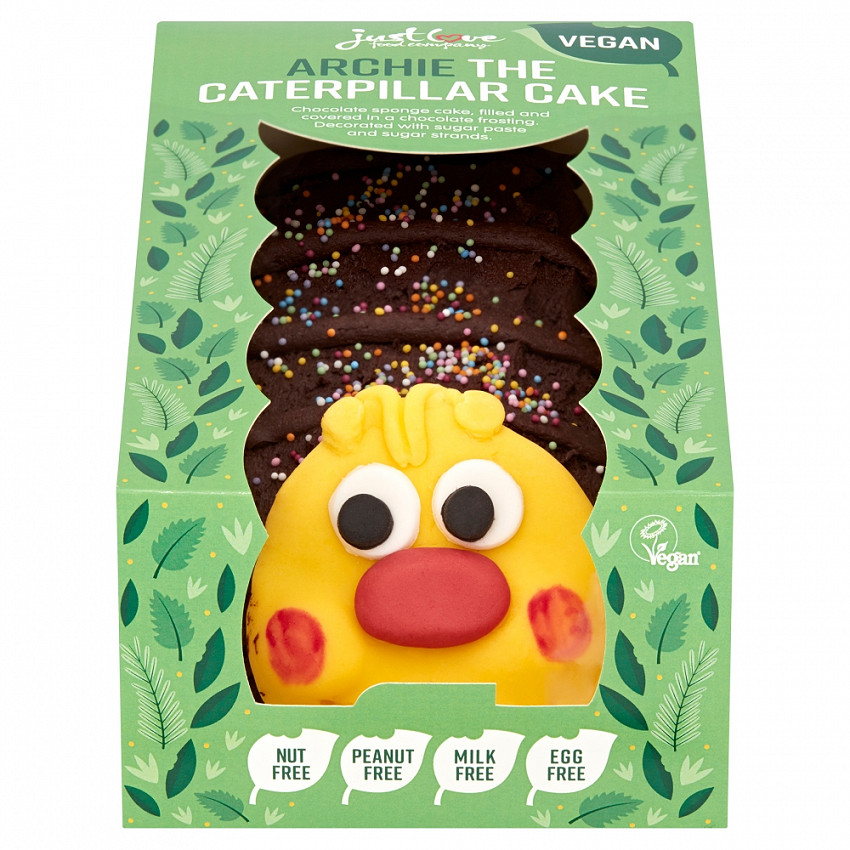Nut-free celebration cake producer Just Love Food Company has launched their very own vegan caterpillar cake called Archie, the bravest caterpillar in town!