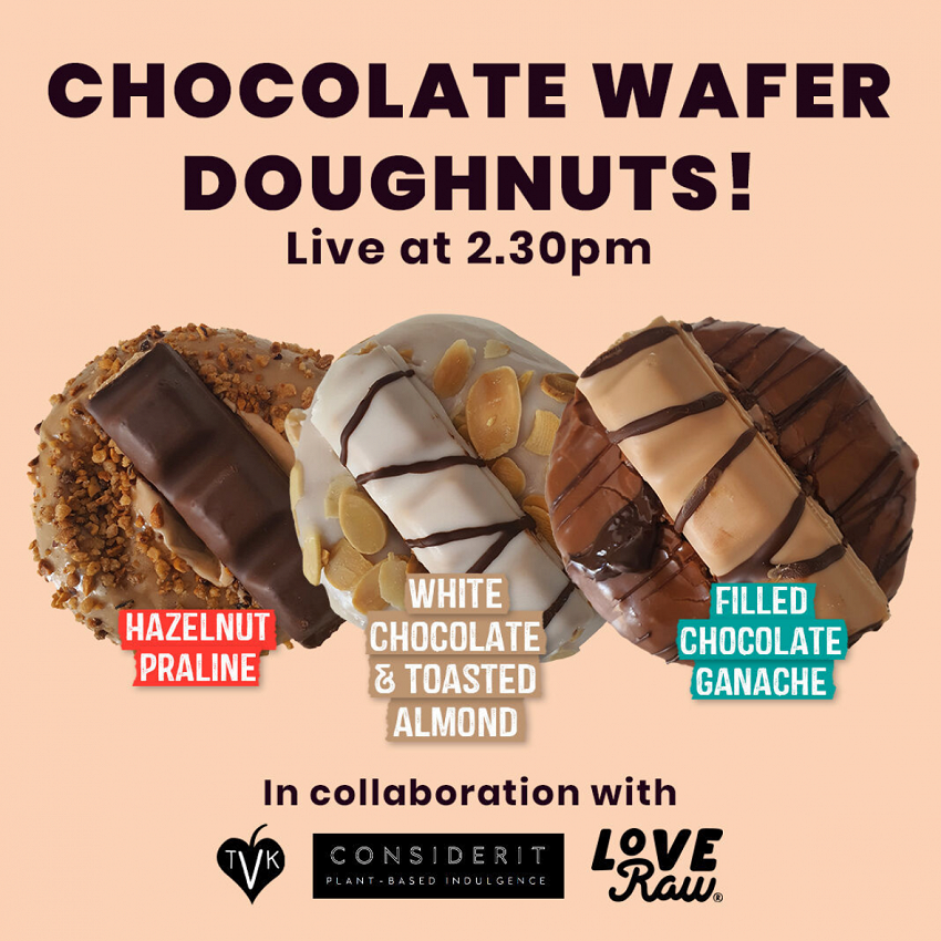 Handcrafted by Considerit and available at TVK Supermarket, the limited edition vegan doughnuts feature three items with delicious LoveRaw® Cre&m Wafer Bar flavours.