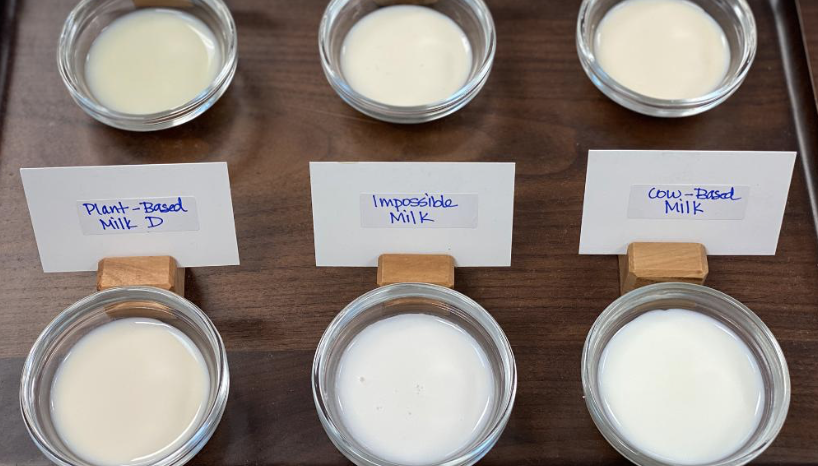 Impossible Foods Senior Flavor Scientist Laura Kilman demonstrated the product prototype during a special online conference. She poured the milk into hot coffee, showing that the Impossible milk did not separate the way many current plant-based milks do.