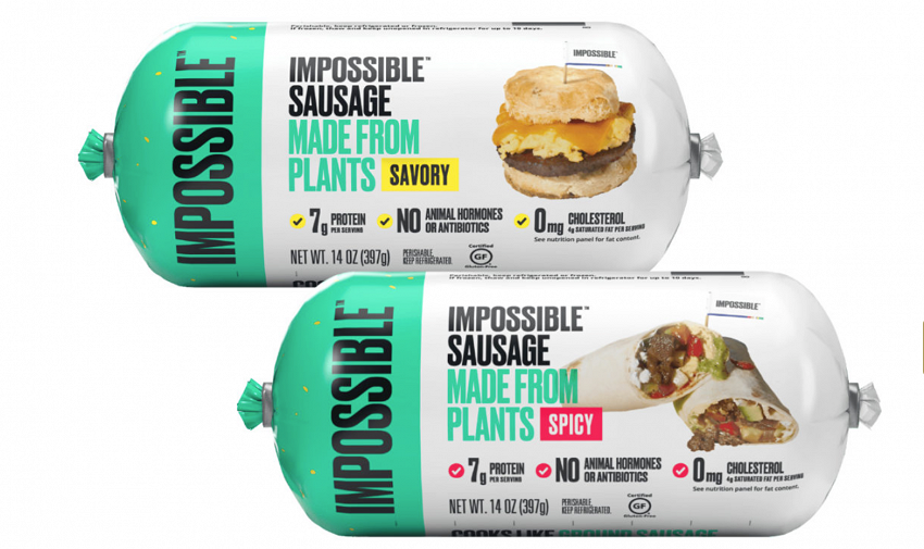 The company says that in a home use test of 136 consumers, 66% said Impossible Sausage tasted as good as or better than ground pork sausage