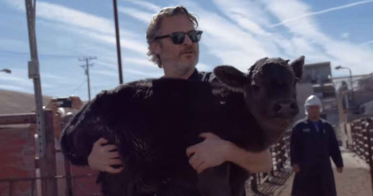 Less than 48 hours after Joaquin Phoenix received his first Oscar for the movie Joker the actor was cradling a newborn calf that he rescued from a Los Angeles slaughterhouse.
