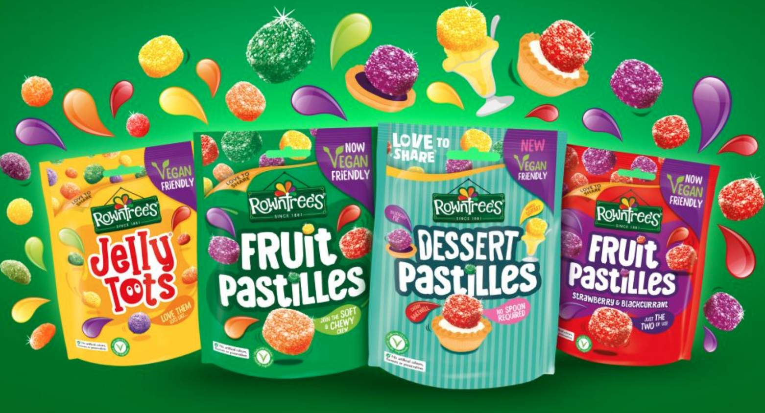 The new Dessert Pastilles come in four pudding-inspired flavours: mango sorbet, blueberry pie, cherry bakewell and apple crumble. They are available in 139g sharing bags. Nestlé reformulated the pastilles recipe last year in order to remove the gelatine.