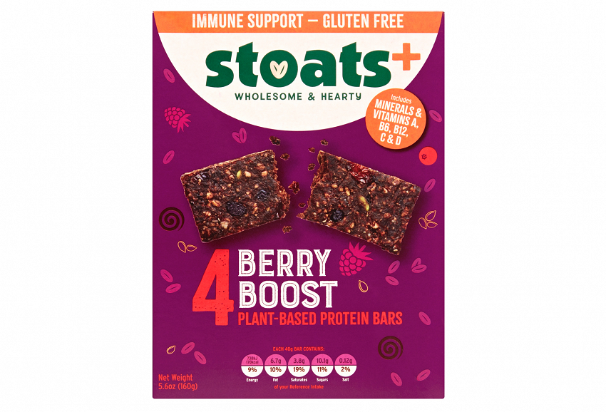 Stoats, one of the largest independent manufacturers of cereal bars in the UK, has launched a new range of bars. The new Stoats+ Immunity Bars, which are gluten-free and plant-based, are available in two flavours: Berry Boost and Chewy Roasted Nut.