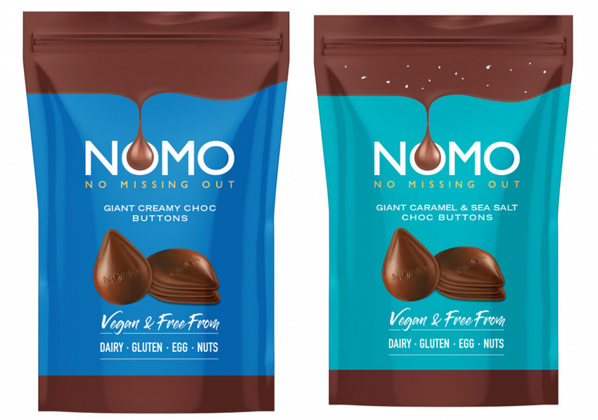 NOMO – the UK’s number one vegan and free from chocolate brand – has announced the launch of its giant chocolate drop shaped buttons in its most popular flavours, Creamy Choc and Caramel & Sea Salt.