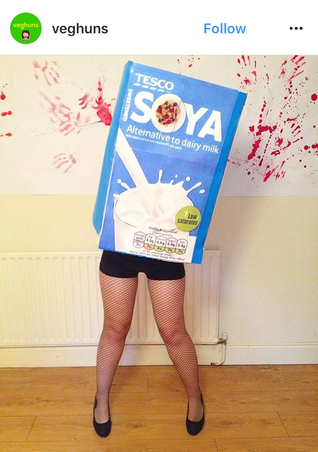 A+ for this incredible soy milk carton costume. Get you pal to go as Tesco’s own brand accidentally vegan chocolate bourbons and you’re laughing.