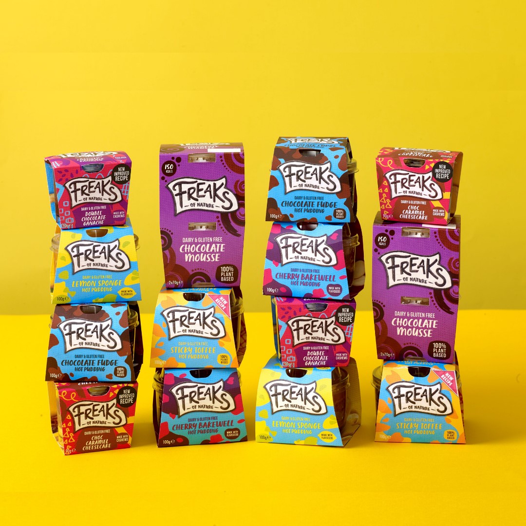 Freaks of Nature’s range includes chocolate and lemon mousses; chocolate fudge hot pudding; sticky toffee hot pudding; lemon sponge hot pudding and cherry Bakewell hot pudding.