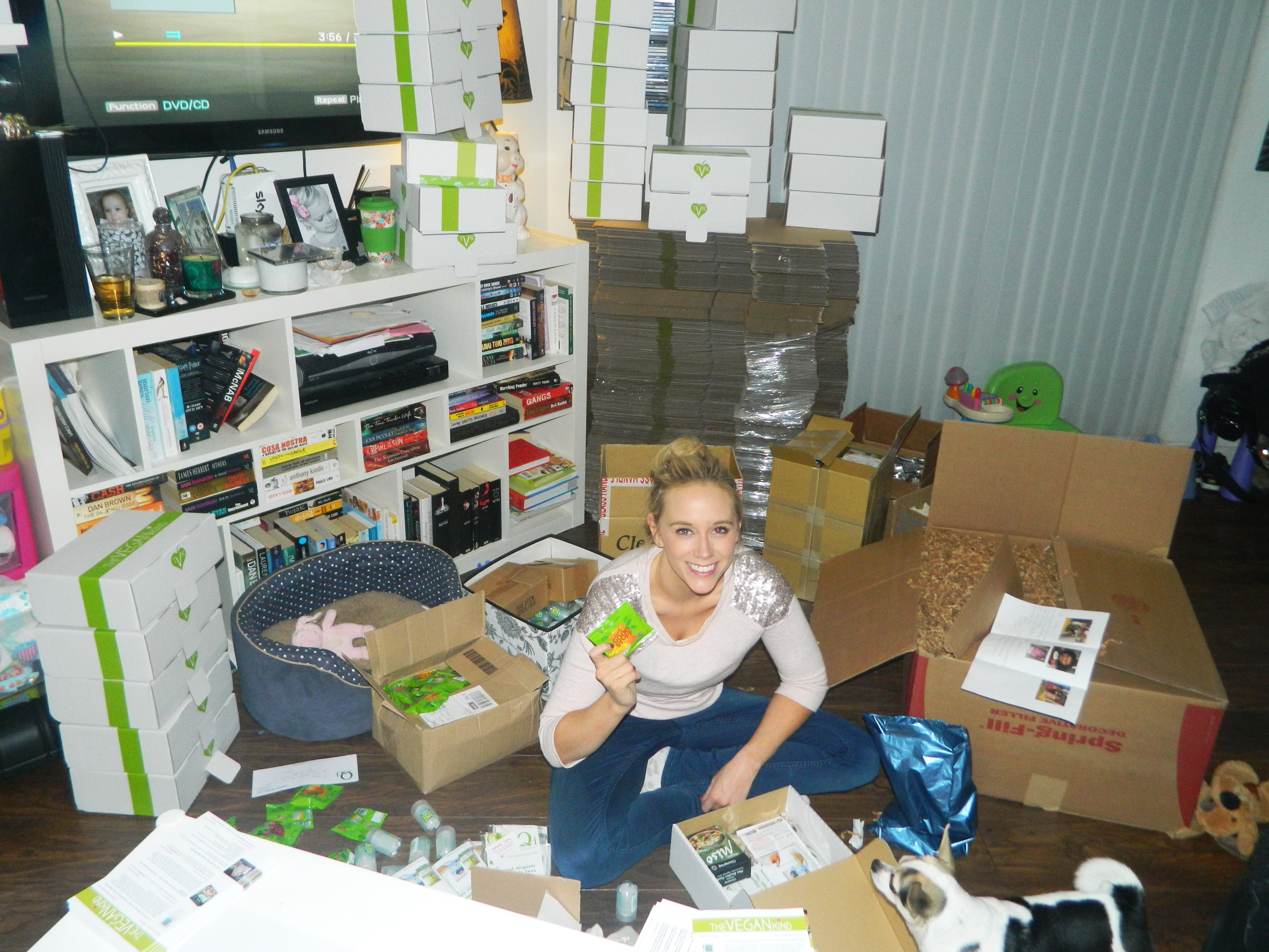 The first ever Vegan Kind Lifestyle Boxes were shipped way back in November 2013 by our founders and new parents Scott and Karris, directly from a living room piled high to the ceiling with cardboard boxes, all kinds of vegan snacks, kids’ toys and nappies! It took a lot of blood, sweat, tears (not just from the baby!), and long, long hours, but each and every subscriber received their inaugural goodie box in time.